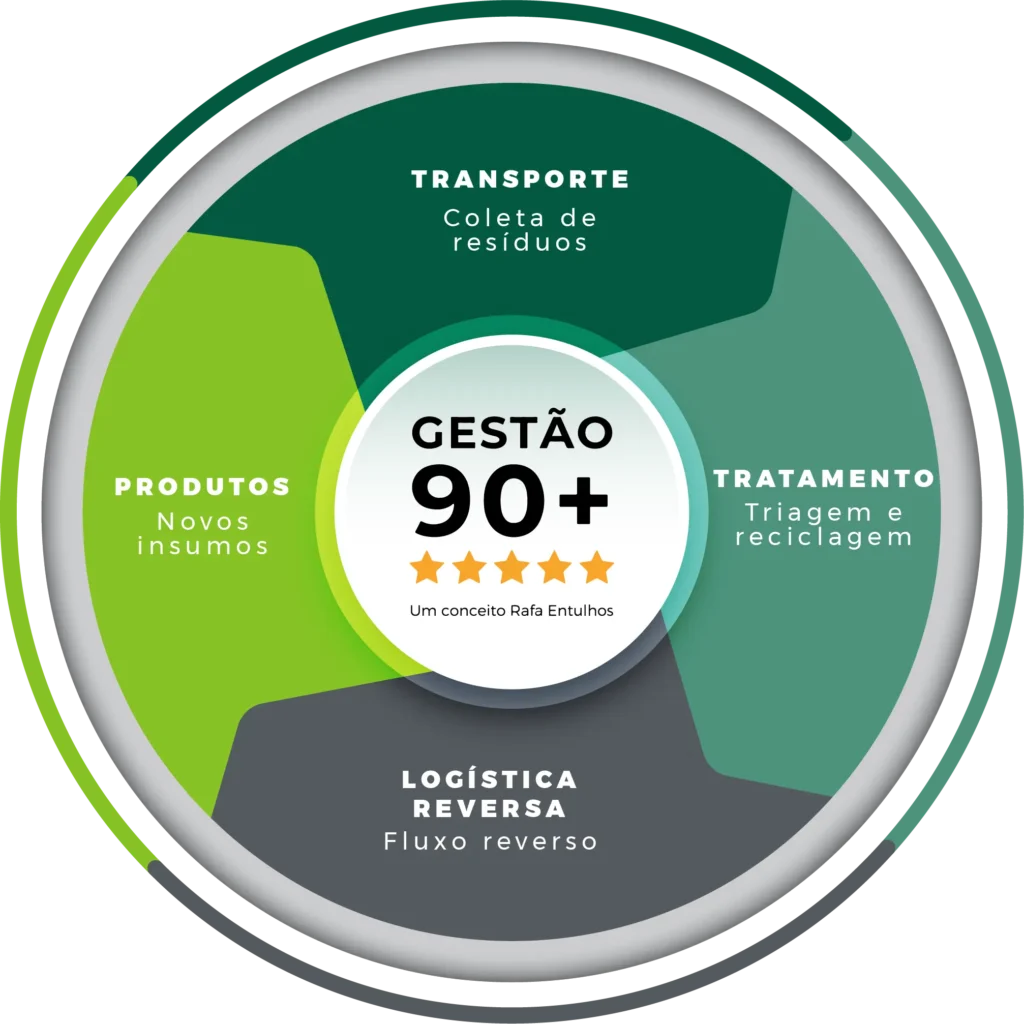 A Gestão 90+ é o conceito desenvolvido pelo Grupo Rafa Entulhos para estruturar a gestão completa dos resíduos da construção civil.